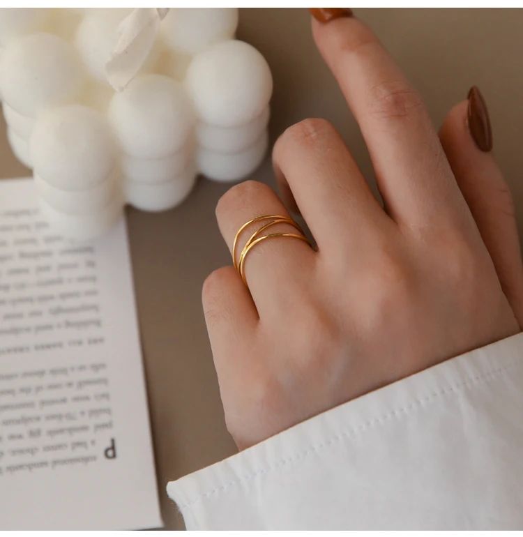 Un intreccio sottile di linee dorate che cattura la luce e la trasforma in eleganza. “Velia” è più di un anello: è un gesto di grazia, un riflesso di armonia. Placcato in oro 18K, è anallergico, resistente e non macchia la pelle, pensato per accompagnarti in ogni momento, con la stessa delicatezza del primo giorno. Perfetto per illuminare un dettaglio quotidiano o impreziosire un’occasione speciale, è il tocco d’oro che parla con semplicità e stile.