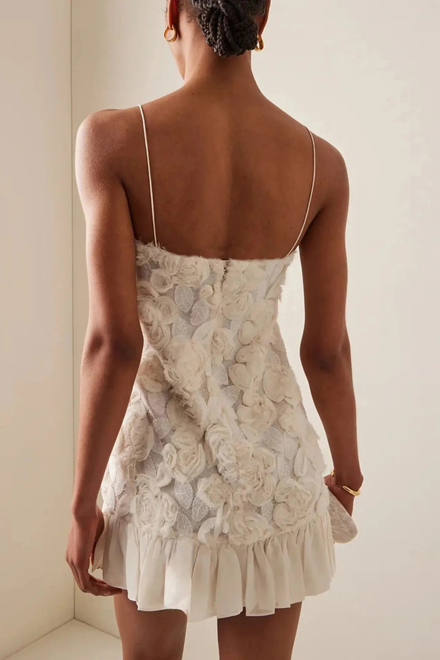 Il vestito Beverly è un capolavoro di delicatezza e femminilità. Realizzato in morbido chiffon, questo mini dress è arricchito da eleganti applicazioni floreali che donano un tocco romantico e raffinato. I dettagli plissé, presenti sulla gonna e sui dettagli decorativi, aggiungono un tocco di texture e movimento, rendendo l’abito ancora più sofisticato. La scollatura a cuore valorizza il décolleté, conferendo un aspetto dolce e seducente, mentre le spalline sottili sottolineano la leggerezza e la delicatezza del modello. Perfetto per occasioni speciali o serate eleganti, l’abito Beverly è un mix di femminilità e raffinatezza, capace di farti sentire unica e incantevole in ogni momento.